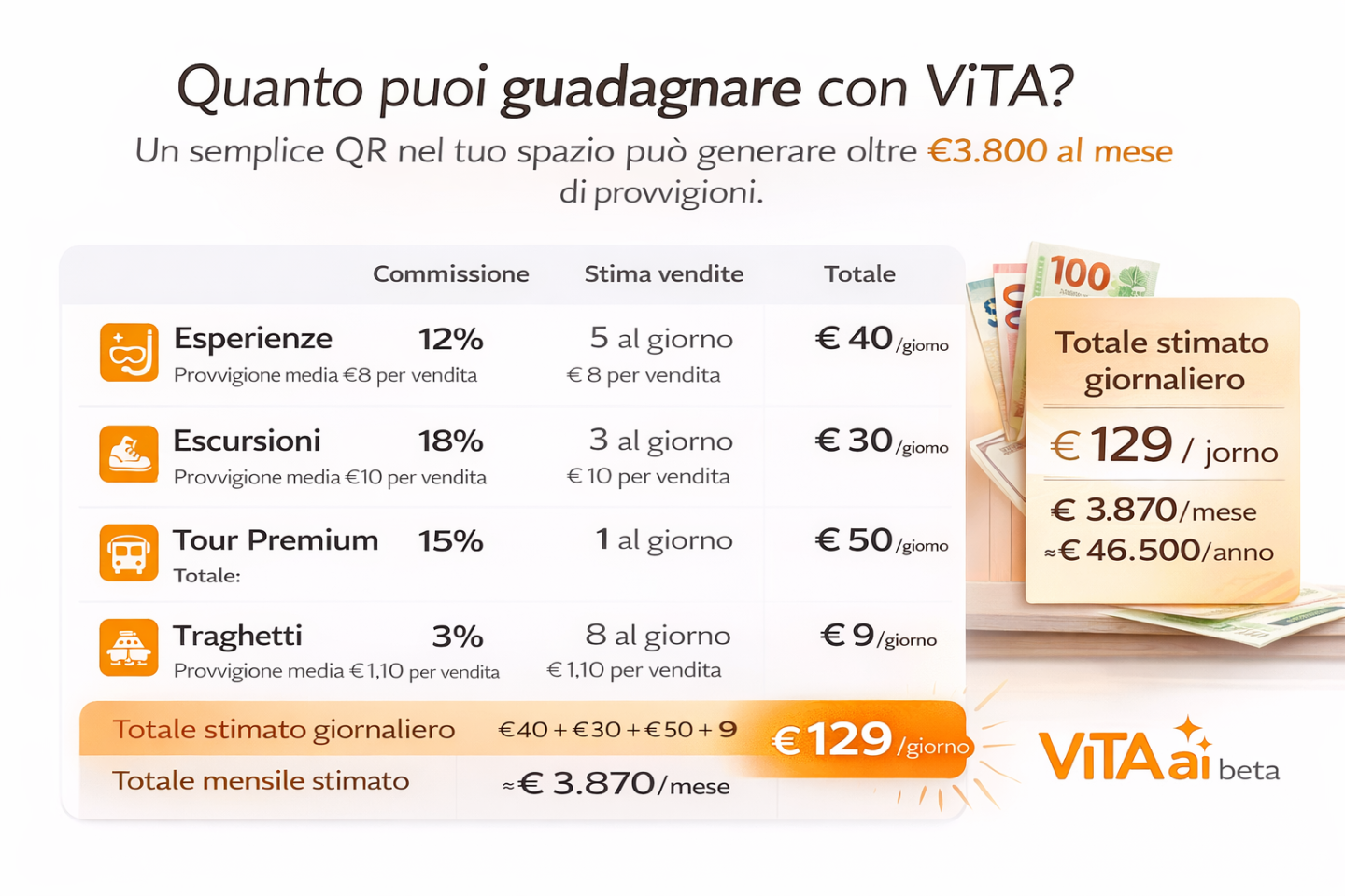 Tu guadagni una commissione per ogni servizio venduto tramite il tuo QR.